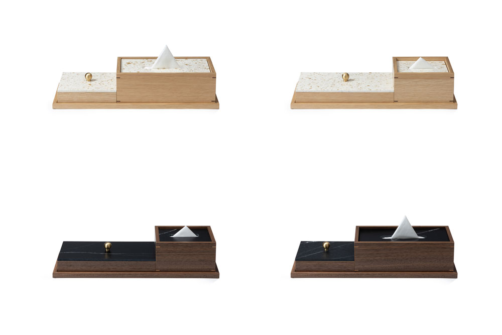ティッシュボックスや小物入れなど、手に触れる機会の多いアメニティだからこそ、素材が伝える手触りや温度感が重要です。STELA AMENITYシリーズでは、ぬくもりのある木素材と組み合わせ、STELAPOPは蓋部分にさりげなく取り入れています。デニム素材をアップサイクルしたSTELAPOPならではの柔らかな表情が、上質な雰囲気を演出します。