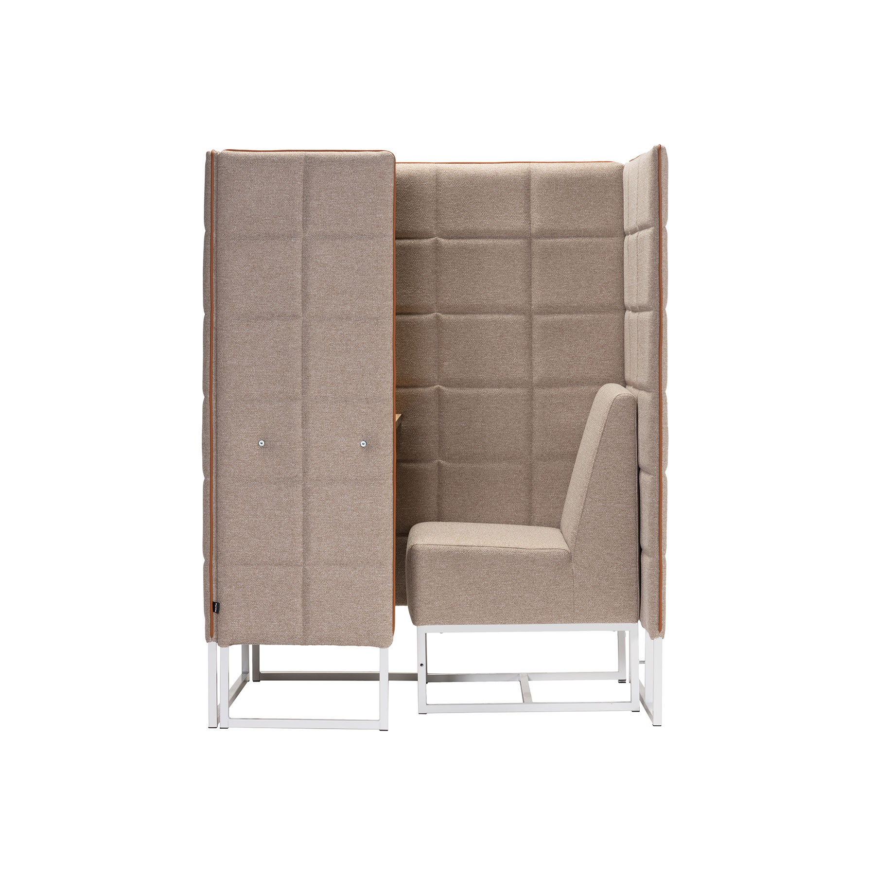 BASED-WIZ PERSONAL BOOTH Cream ベースドウィズ パーソナル ブース クリーム DESK, STORAGE Brand Size W1085 D870 H1415 SH440 TH730 Material Fabric, Steel, Melamine Price ¥150,000 without Tax qty 見積リストに追加 ※組立式 PRODUCT DATA SHEET