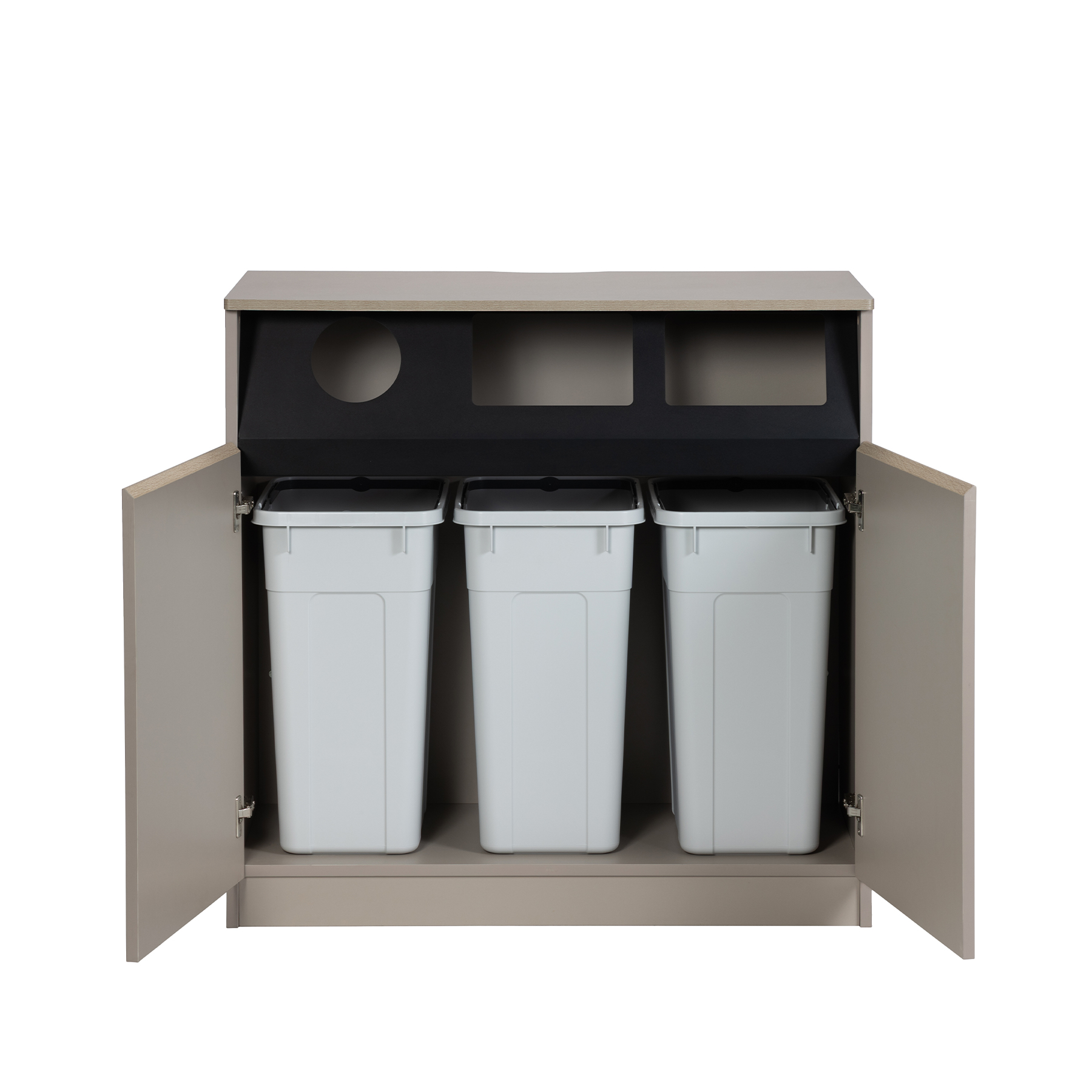 NOMUSS TRUSH BOX Beige ノーマス トラッシュ ボックス ベージュ DESK, STORAGE Brand Size W1000 D500 H1000 Material Melamine, Steel Price ¥94,000 without Tax qty 見積リストに追加 ※ゴミ箱45Lサイズ3個収納可能(ゴミ箱本体は付属しておりません) PRODUCT DATA SHEET